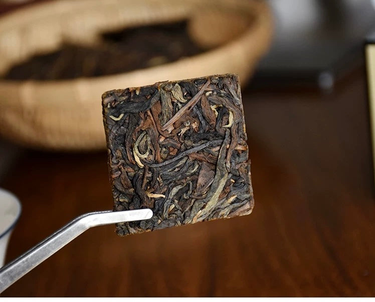 After secondary steaming and pressing, it is made into small pieces of tea. The green flavor of the tea leaves fades away, and the aroma is a very natural wild honey fragrance with a floral fragrance, not gaudy or charming. It tastes sweet as soon as you put it in your mouth. The soup feels mild and full, light and sweet, without heat and dryness. The throat taste is sweet and refreshing, and the palatability is better.
