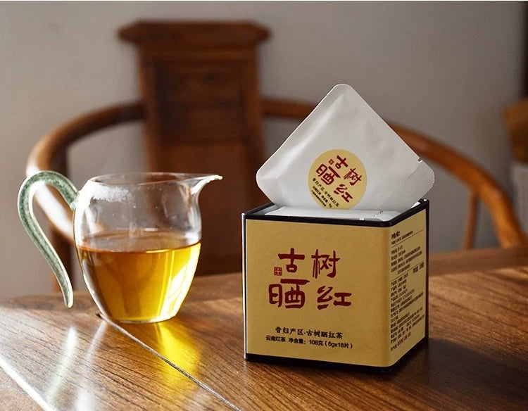 Sun-dried black tea is made from fresh leaves of large-leafed ancient trees that are picked, withered, rolled, fermented, and dried in the sun. Sun drying makes the aroma of sun-dried tea more natural, and the tea tastes clearer. It also has the characteristic of becoming more fragrant as it ages.