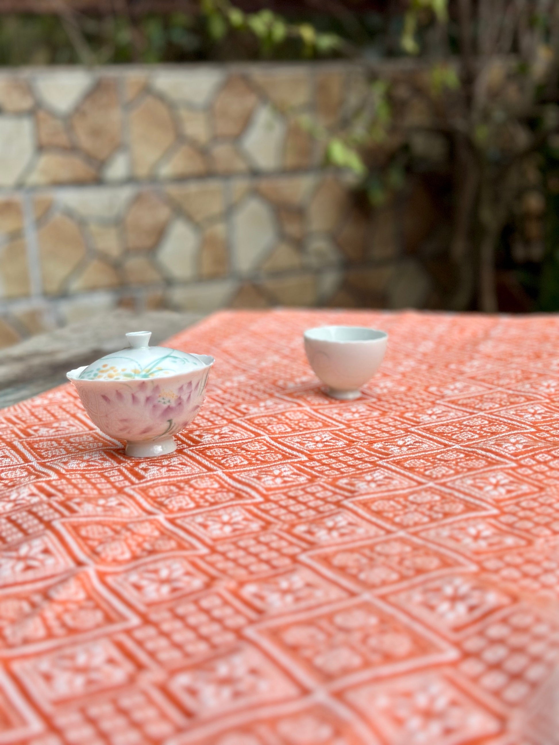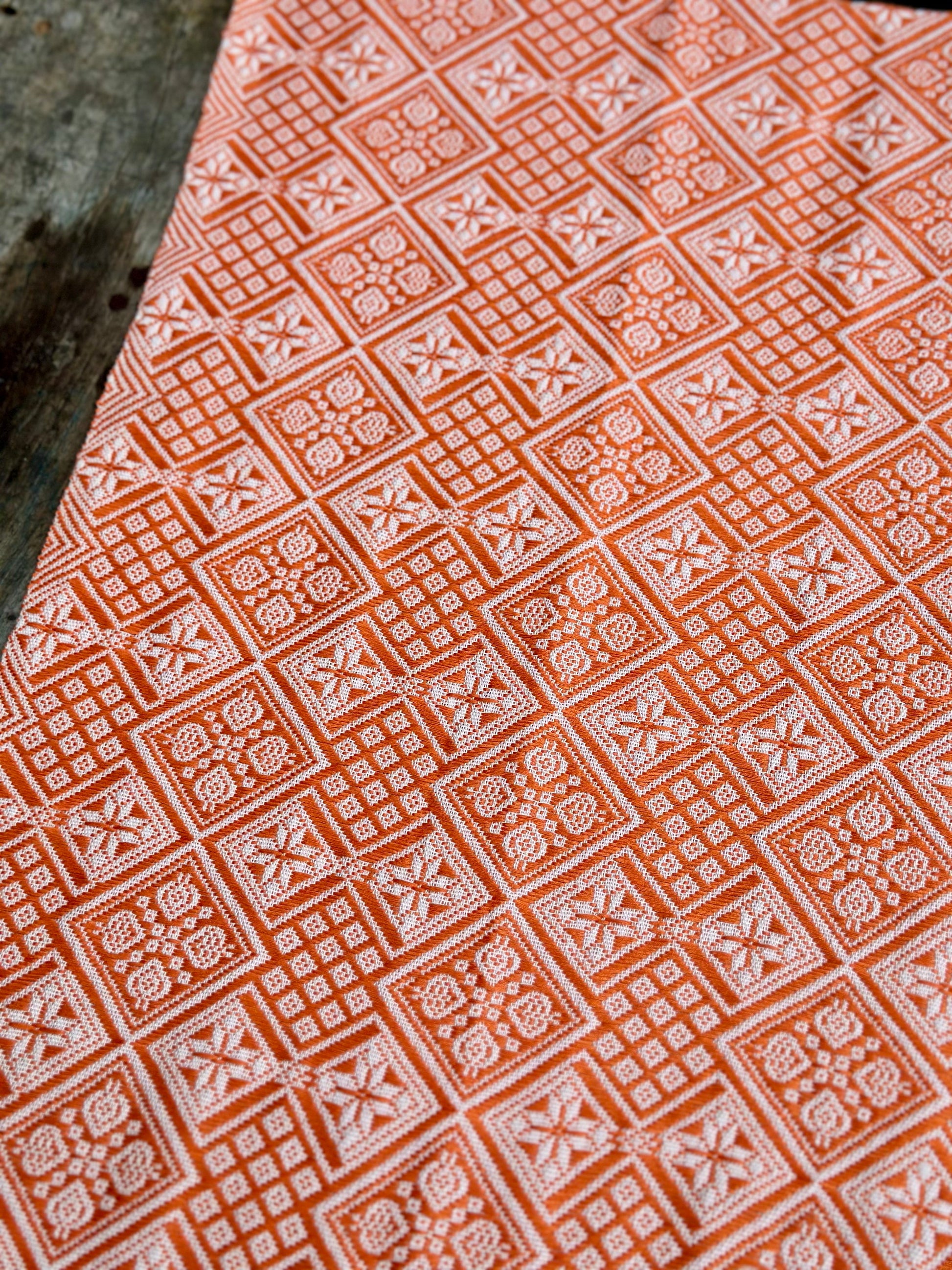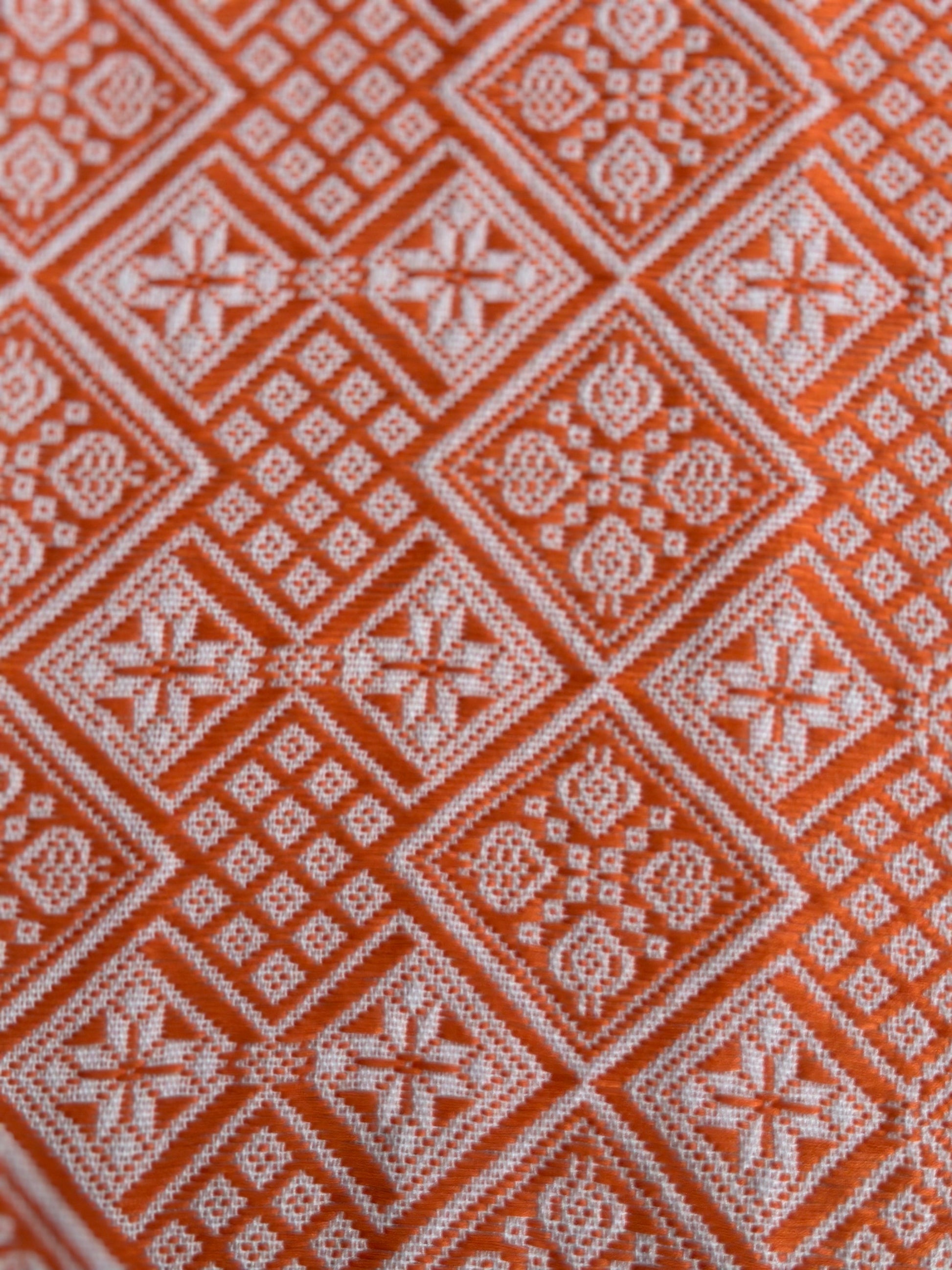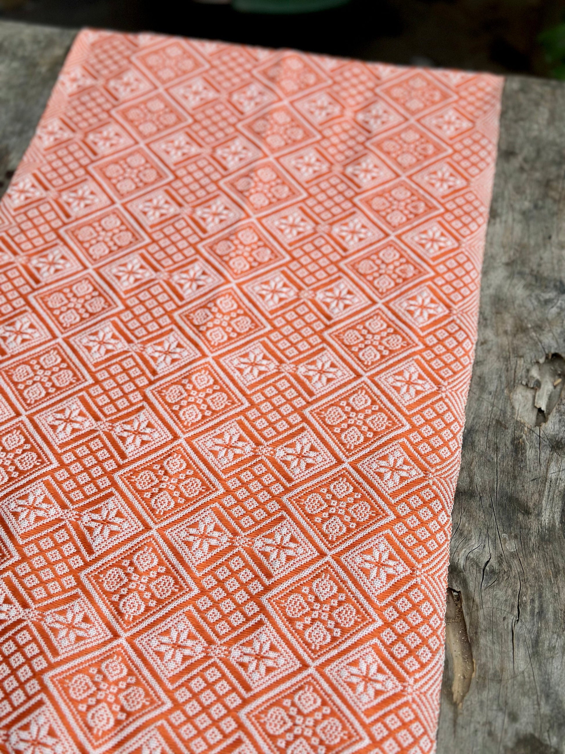 High-end Handcrafted Anise Pattern Chinese Orange White Zhuang Brocade Silk Cloth Scarf Tea Table Cloth